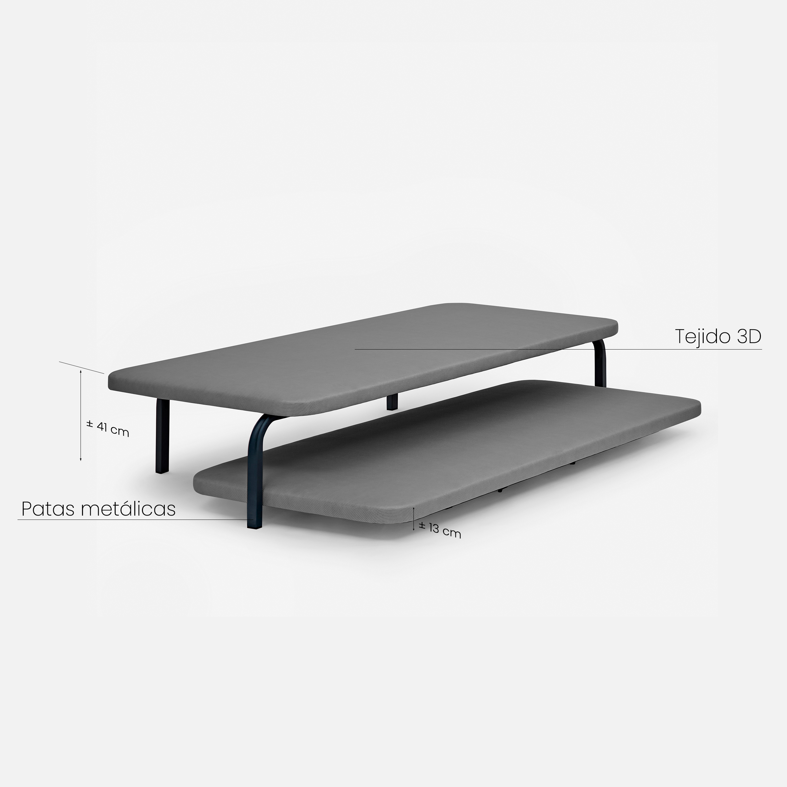 * Desplegada tiene la altura total de 41 cm, plegada 13 cm. El colchón que puede utilizarse para esta parte deberá ser de altura máxima 24 cm para que entre correctamente (sin ropa de cama).