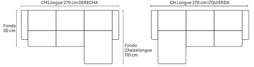 Trae 2 pufs en el brazo, arcón en chaiselongue y almohadas “siesta” en los 2 brazos.